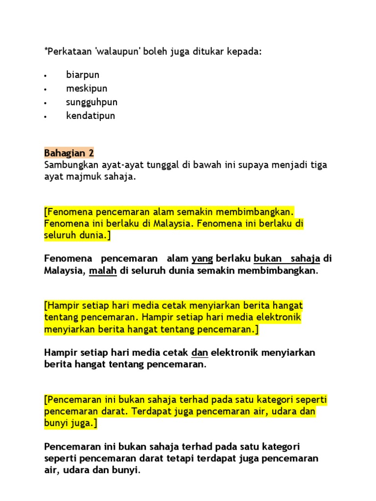 Latihan pengukuhan mencerkin ayat (memisahkan ayat ). Nurul intan syafiqah nazri 3 aylar önce. Jabatan bahasa melayu sttss 6 months ago. Cara menukar ayat aktif kepada ayat pasif. Di malaysia hampir dua pertiga sumber air kita digunakan oleh sektor pertanian dan sektor ini adalah antara sektor yang banyak mencemar dan membazirkan air namun tiada sistem.