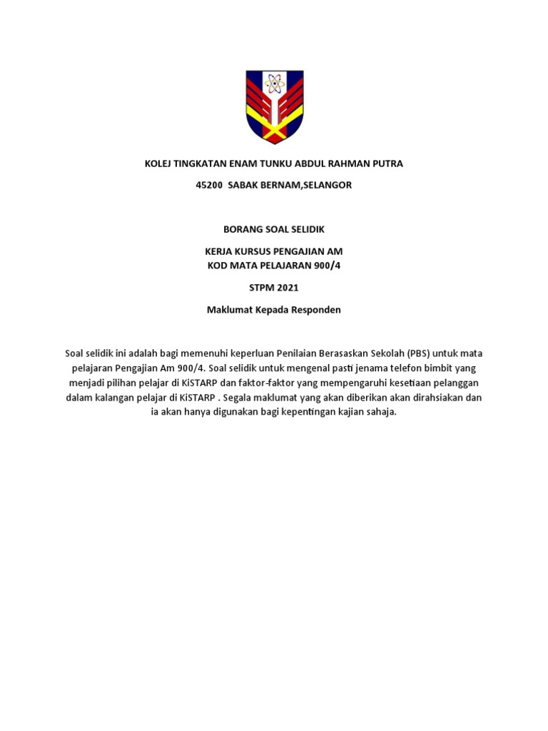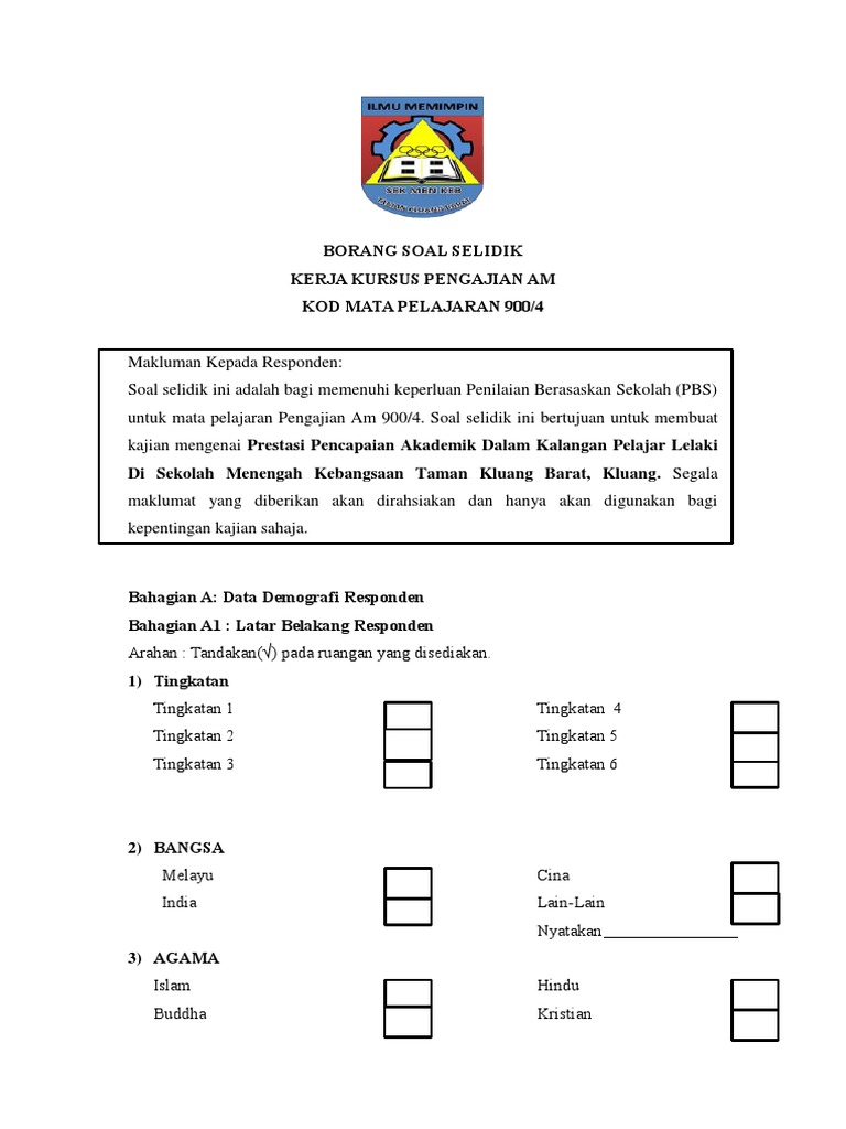 Related : Borang Soal Selidik Pengajian Am - Borang Soal Selidik Kerja Kursus Pengajian Am Docx Borang Soal Selidik Kerja Kursus Pengajian Am 900 4 Kepada Respoden Yang Dihormati Diharapkan Course Hero / Maybe you would like to learn more about one of these?.